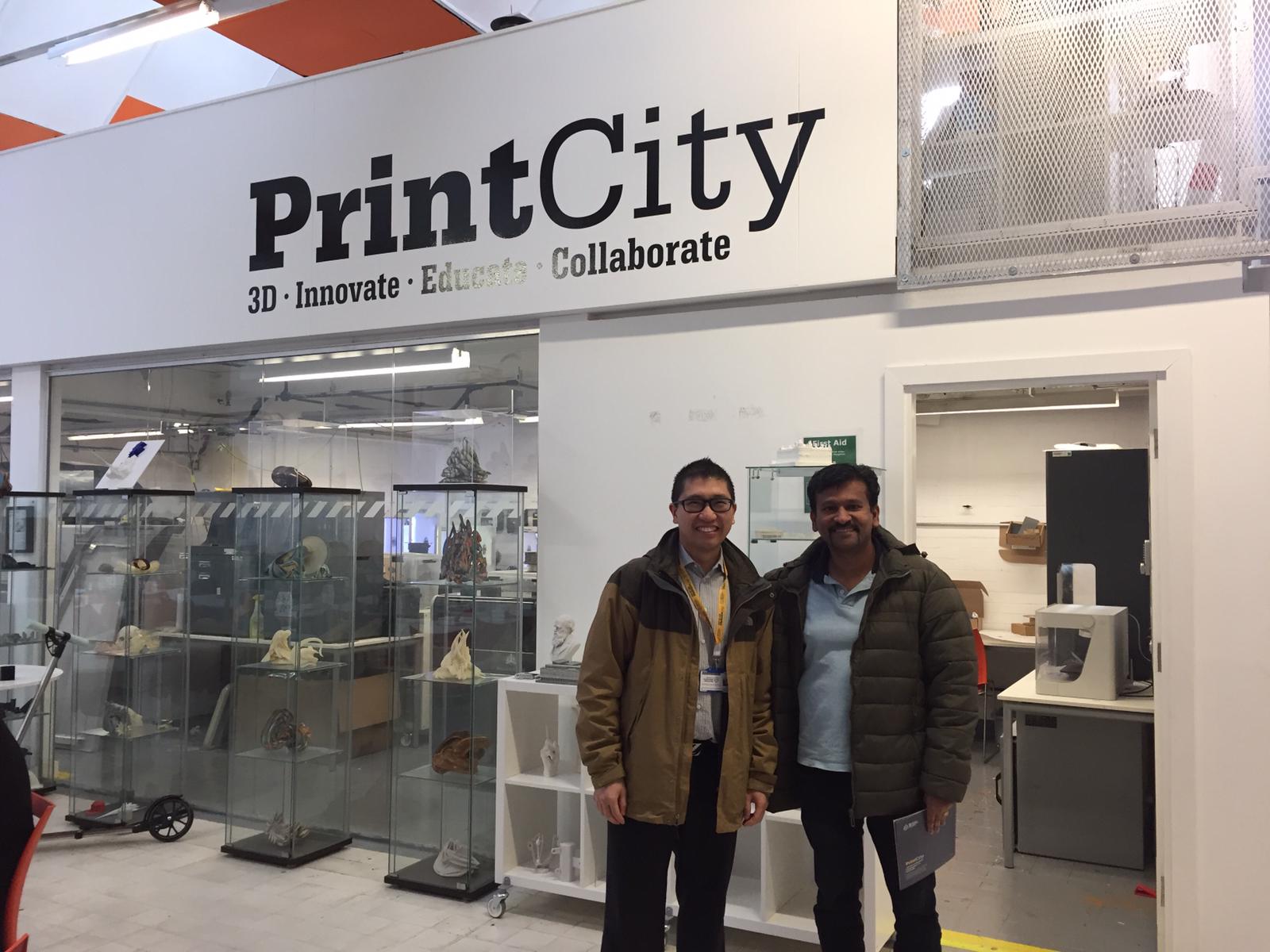 Visited Print City, Department of Engineering, Manchester Metropolitan University, United Kingdom. Picture taken with Dr. Eric Lou at Print City which houses different sizes of 3D printers.